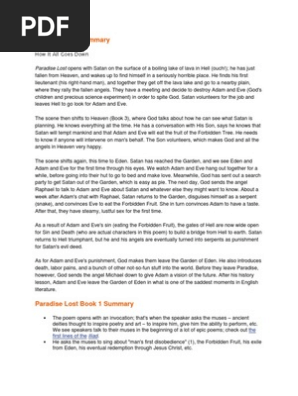 Paradise Lost Summary Pdf Paradise Lost Adam And Eve